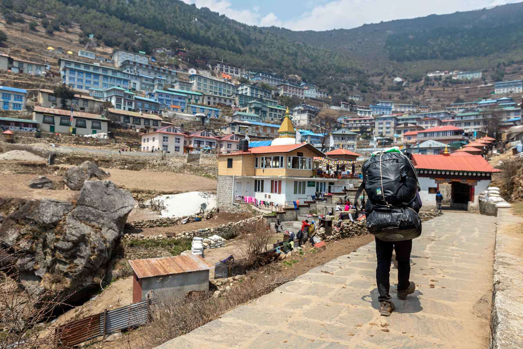 Целью нашего сегодняшнего перехода станет знакомый нам Намче-Базар (3 440м), место где можно вкусно поесть, отведать выпечку из пекарни и выпить кружечку итальянского кофе. Таже можно поторговаться за присмотренные заранее уникальные сувениры. Деньги, которые вы тут заплатите пойдут полностью на поддержку местных семейств. Тут нас ждет горячий душ и долгий спокойный сон, после высоких гор, тут спаться будет особенно приятно.