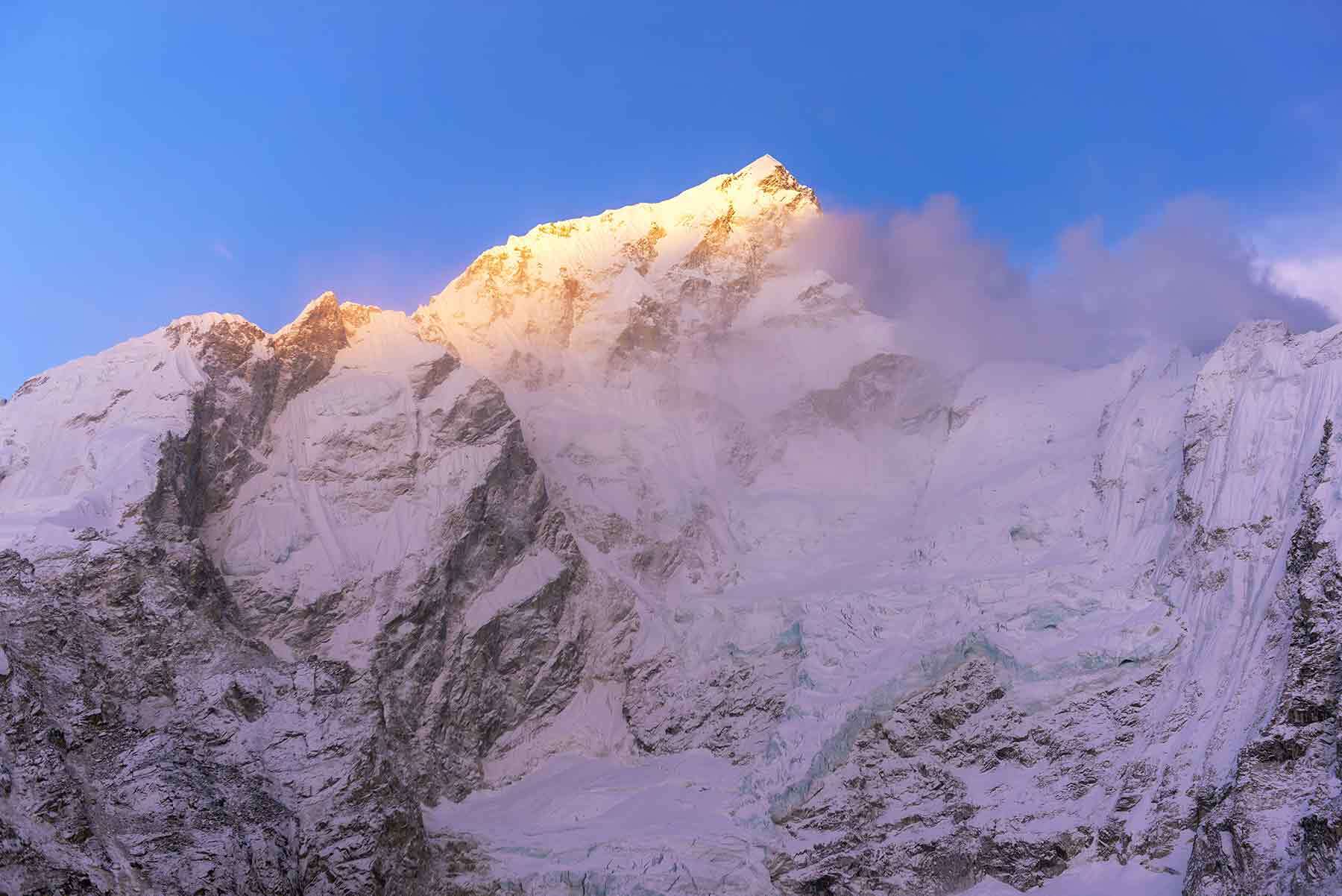 Национальный парк Сагарматха - укромная часть Непала, примыкающая к Тибету, является самым высоким природных парком как во всем мире, он расположен в Верхних Гималаях. Трекинг тут начинается в субтропических джунглях с эвкалиптами и бамбуковыми зарослями, проходит через зону хвойных лесов и рододендронов и выходит в зону горных пастбищ, где пасутся яки и доходит до самих ледников. Мы будем иметь прекрасную возможность увидеть панораму самых высоких гор в мире на рассвете с горы Калапатар (5 645 м) и с горы Гокио-Ри (5 357м).