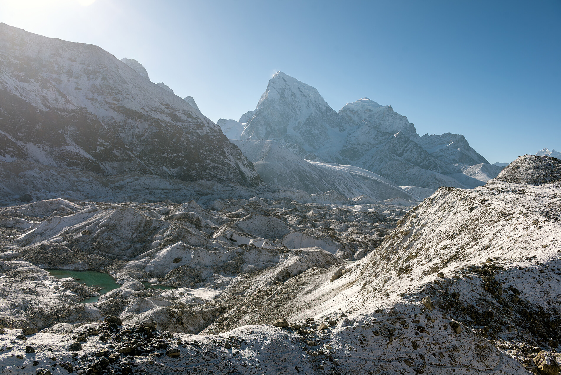 Примерно через 2 часа после выхода, мы подходим и переходим через язык ледника Нгозумпа (сам ледник является самым большим в мире по площади).