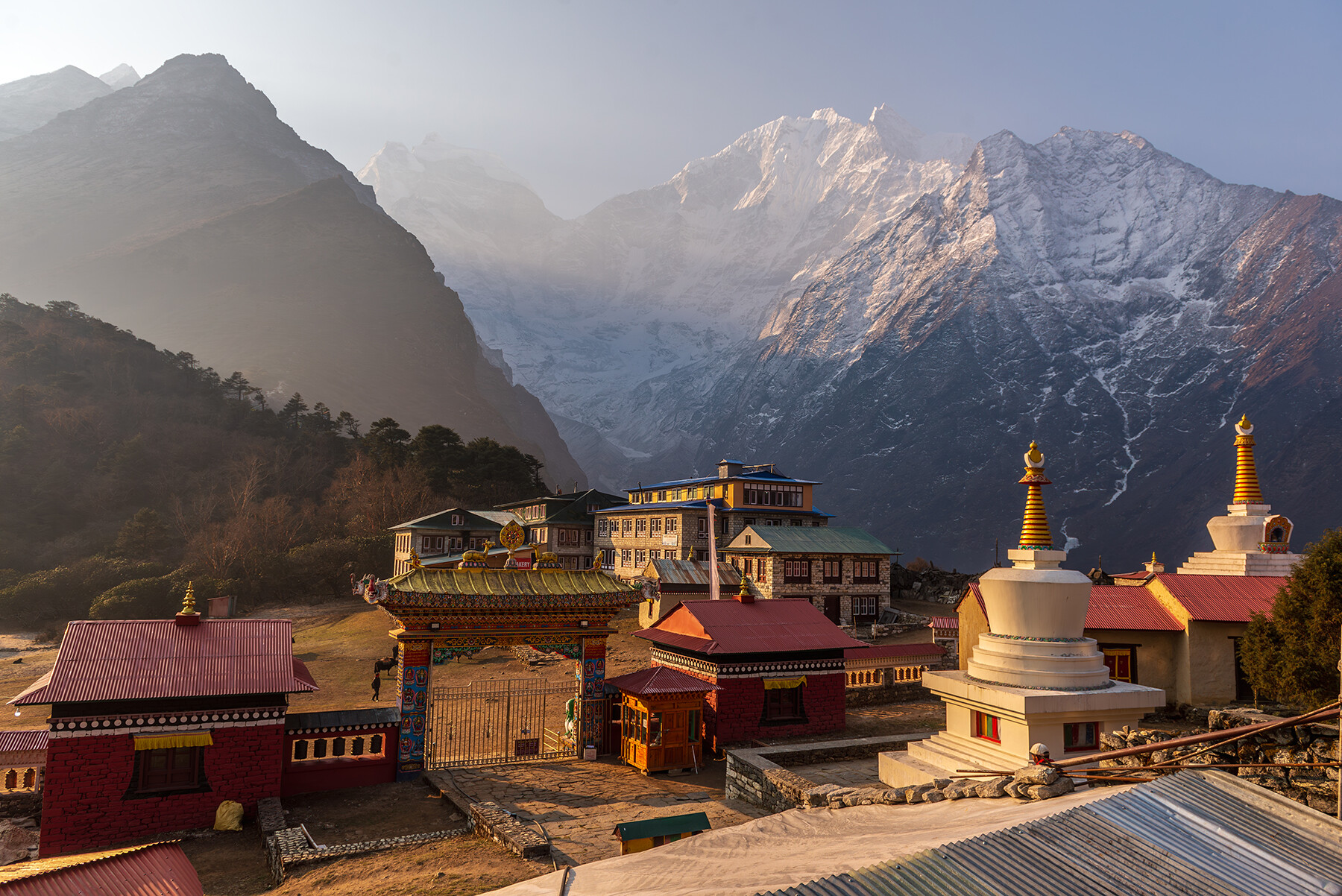 Наша ночевка будет в деревне Тенгбоче (3 870м), известной своим масштабным и красивейшим монастырем, по местным меркам. От ворот монастыря открывается одиз из лучших видов на невероятно красоты гору Ама-Даблам (6 814м).